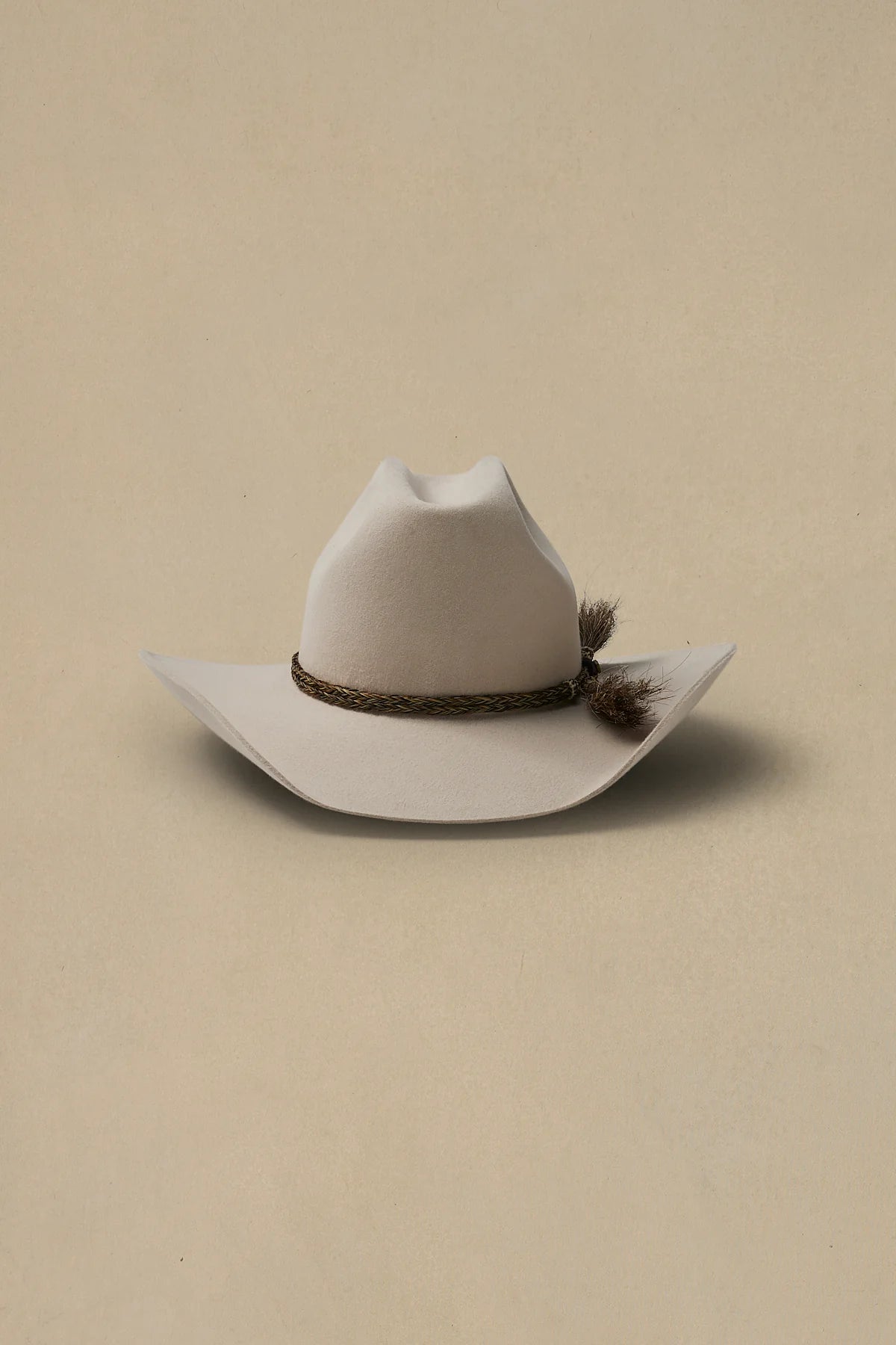 - Braided double horse hair tail band with brass pin
