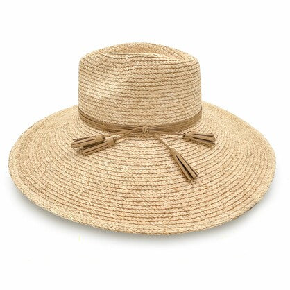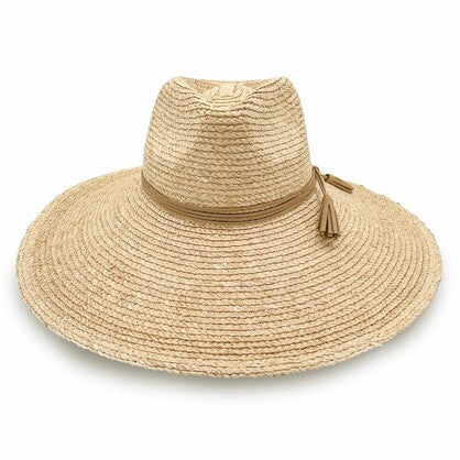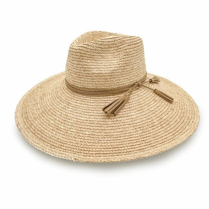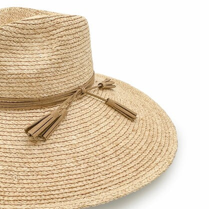 Natural Elegance with a Coastal Spirit. Embrace the effortless charm of sun-soaked days with the Kimberley, a refined wide-brim fedora style handcrafted from premium Madagascan Raffia and elevated with a brown leather trim and playful tassles. Lightweight and breathable, its natural weave exudes relaxed sophistication, making it the perfect companion for beachside escapes and boating adventures alike. A brown tassled trim elevate Designed for both beauty and practicality, the Kimberley features a discreet ComfyFit adjustment for a secure, tailored fit, along with an adjustable and removable toggle that offers versatility and wind resistance when you're on the move. Chic, natural, and endlessly wearable – the Kimberley is where laid-back luxury meets sun-smart style.